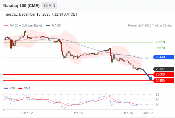 在 25440 之下,看跌,目标价位为 25000 ,然后为 24850 。