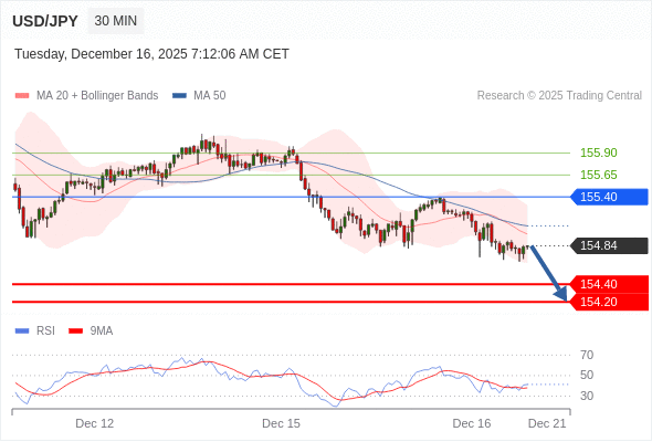在 155.40 之下,看跌,目标价位为 154.40 ,然后为 154.20 。