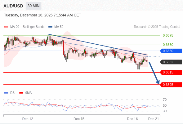 在 0.6650 之下,看跌,目标价位为 0.6615 ,然后为 0.6595 。