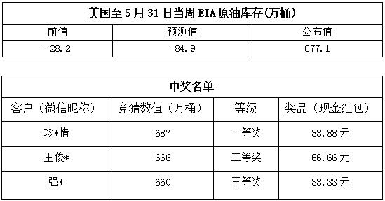 2019年6月第1期“EIA大竞猜活动的中奖结果已出,获奖信息如下: